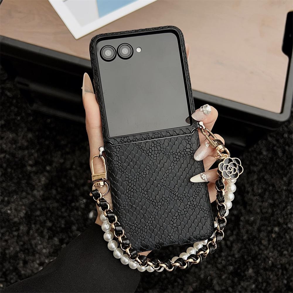 Чехол для телефона из ПУ кожи с узором змеи для Samsung Galaxy Z Flip7 FE Flip6 Flip5 Flip4, с цветочным шармом, ударопрочная защитная крышка на шарнир Galaxy Z Flip7