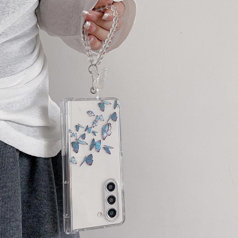 Чехол для телефона с принтом цветов и бабочек для Samsung Z Fold5 Flip5 Fold4 3 Flip4 3, прозрачная складная противоударная жесткая задняя крышка с цепочкой на руку