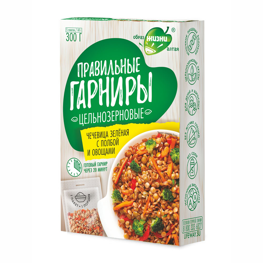 Чечевица зеленая Образ жизни Алтая с полбой и овощами Правильные гарниры 300 г