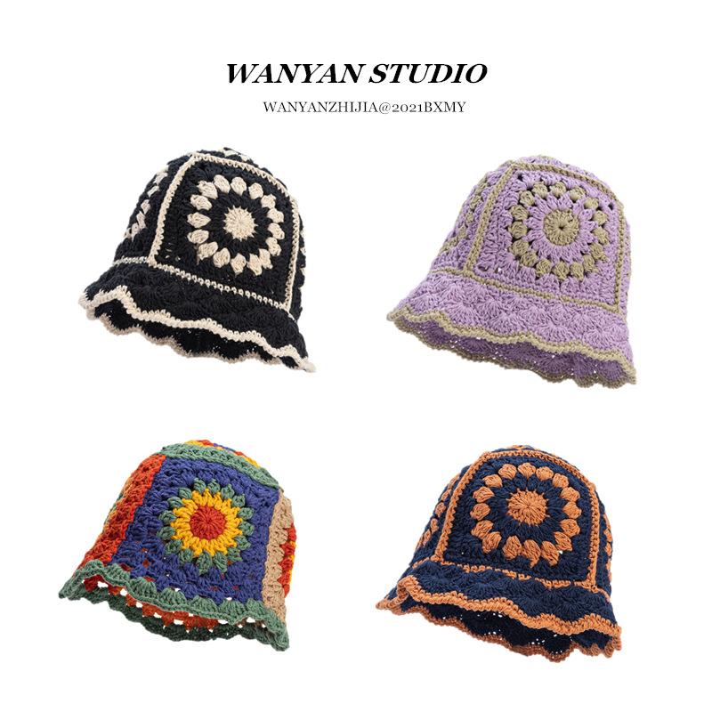 Чешская ручная крючок модная вязаная рыбацкая шапка с цветком для тепла на открытом воздухе осенью и зимой