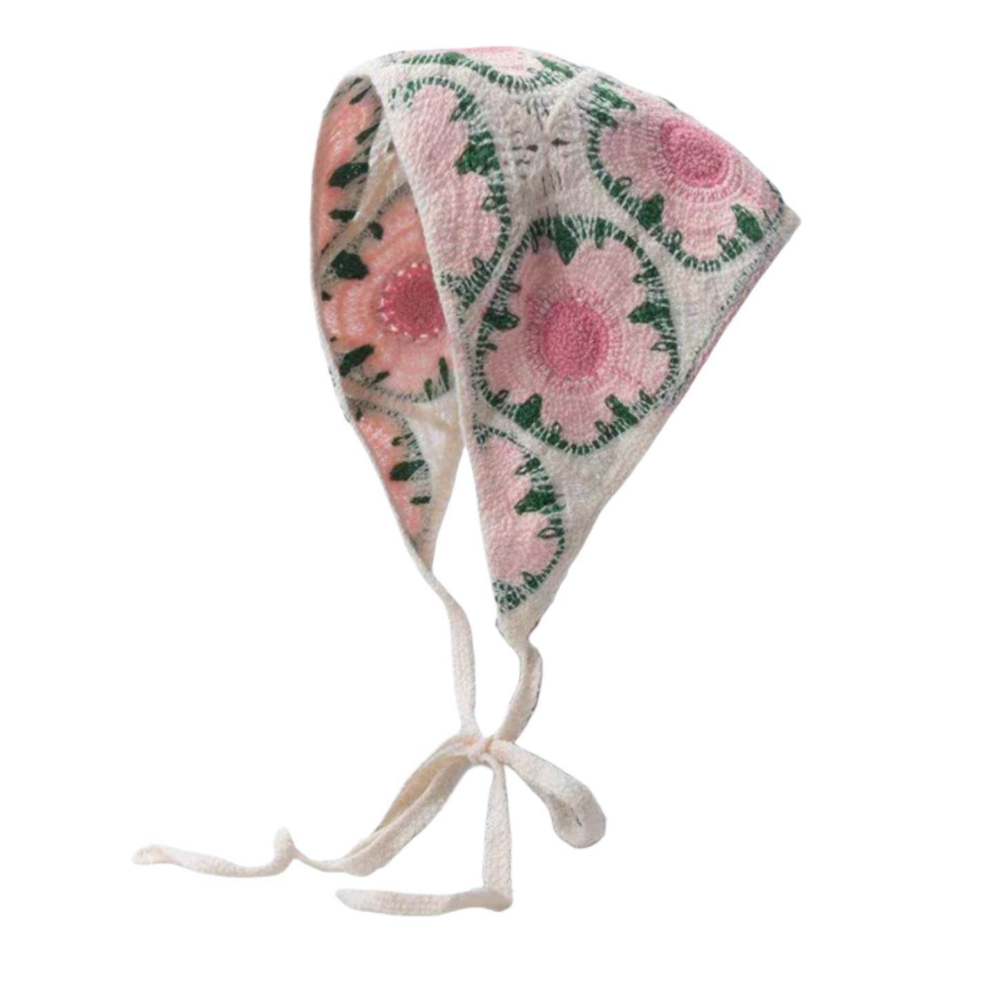 Чжао Чжаои Вязаный треугольный платок в стиле кроше - Универсальная, модная ретро пасторальная повязка на голову для женщин и девушек