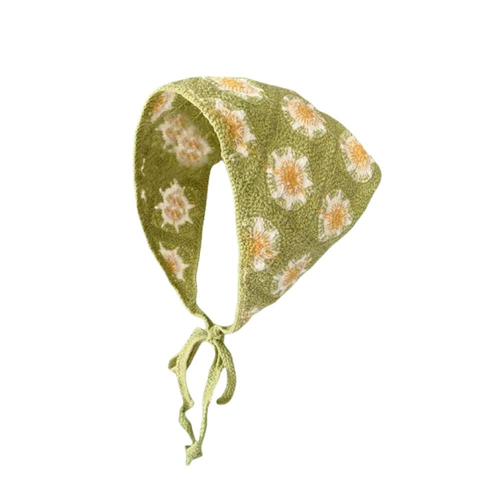 Чжао Чжаои Вязаный треугольный платок в стиле кроше - Универсальная, модная ретро пасторальная повязка на голову для женщин и девушек