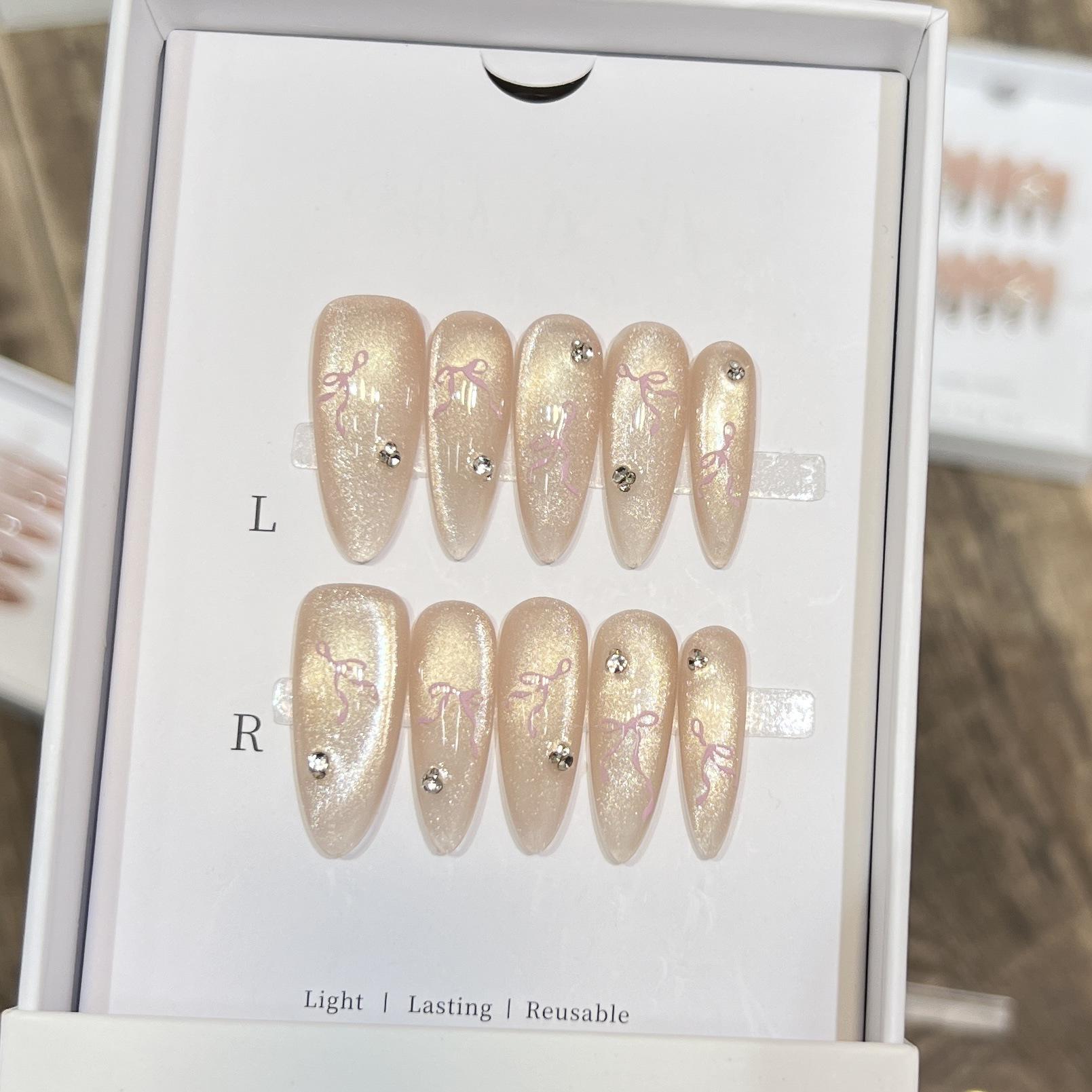 Чистая ручная броня для ношения с высококлассным простым стеклянным шариком, кошачий глаз, бант-лента, темпераментный стиль, маникюр, съемная накладка для ногтей Large L