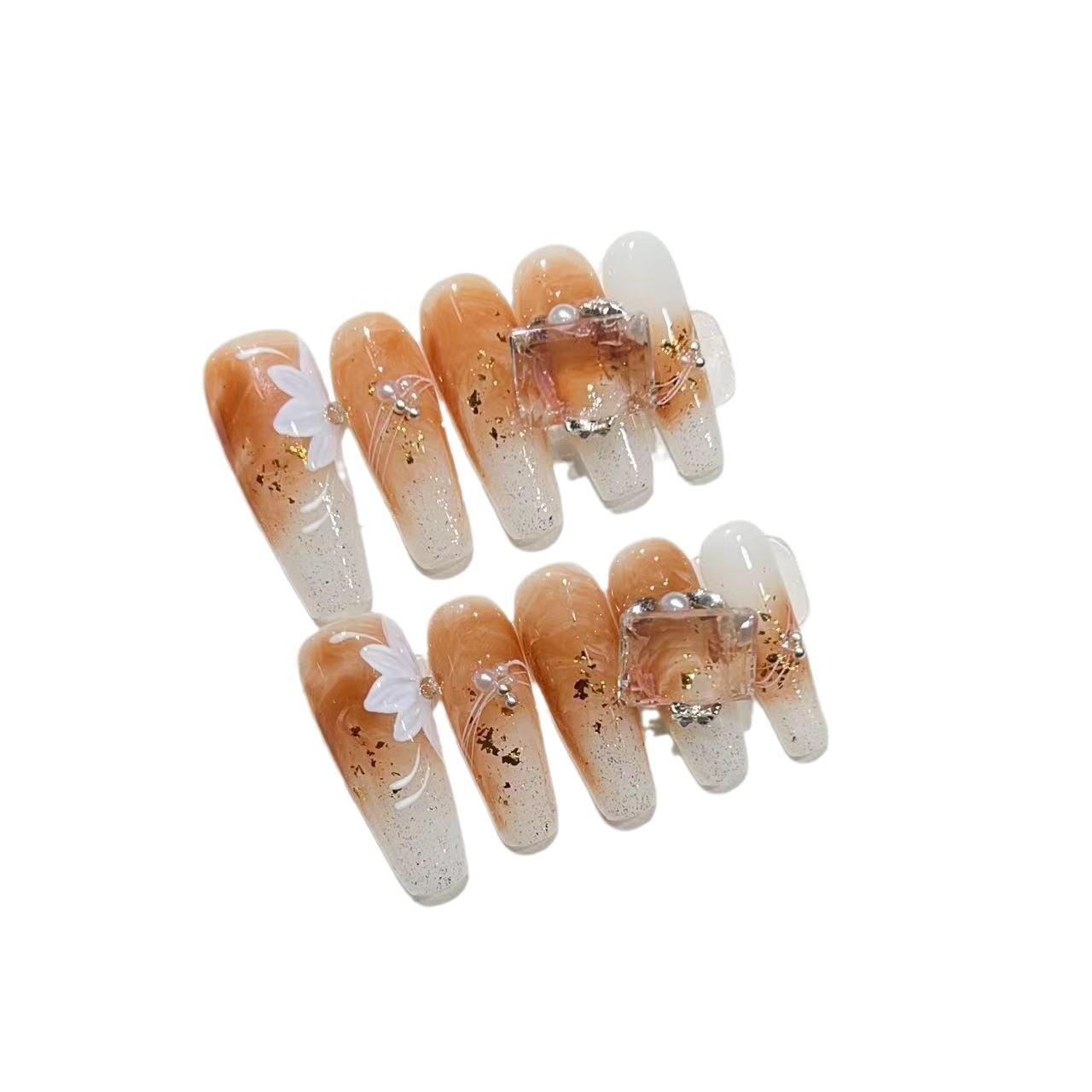 Чистая ручная роспись Маленький цветок Осень и Зима Карамельный цвет Мазок Золотая фольга Блестки Французский флэш Крупный сахарный бриллиант Large L
