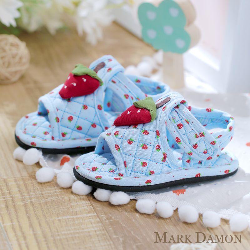 Чистый хлопок, мультяжная ткань, детские 1-3-6 лет, для малышей, мягкая подошва, нескользящие, бесшумные, домашние тапочки для помещения Strawberry Blue Small size 18 (inner length 14cm)