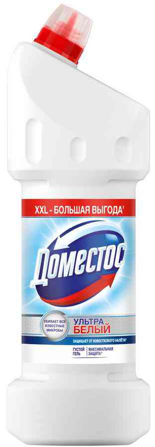 Чистящее средство для туалета и ванной Доместос Ультра Белый поможет обеспечить чистоту и гигиену унитаза, устранение неприятных запахов, удаление плесени и мыльного осадка, антимикробную обработку малых поверхностей и предотвращение появления известкового налета.Очищающий гель Доместос Ультра Белый может применяться для очищения туалета. Доместос гель для унитаза оснащен удобным дозатором, который помогает равномерно и экономно наносить средство на нужную поверхность.Чистящее средство для туалета и ванной Доместос Ультра Белый:- уничтожает бактерии, плесень, грибки, вирусы и споры;- помогает устранить неприятные запахи;- помогает предотвращать появление известкового налета;- отбеливает фаянсовые поверхности;- обладает густой экономичной формулой;- используется в неразбавленном виде.
