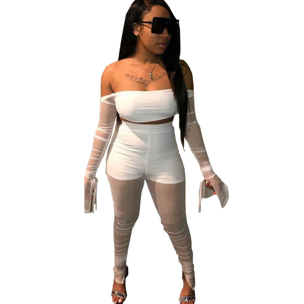 Пикантные сетчатые Прозрачные женский комплект 2 шт. Клубные наряды праздничная одежда с открытыми плечами с вырезом лодочкой укороченный ...