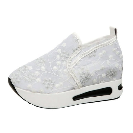 KELINFONG Womens Sneakers Platform Wedge Walking Shoes Fashion Embroidery Floral Mesh Sole Slip on Loafers