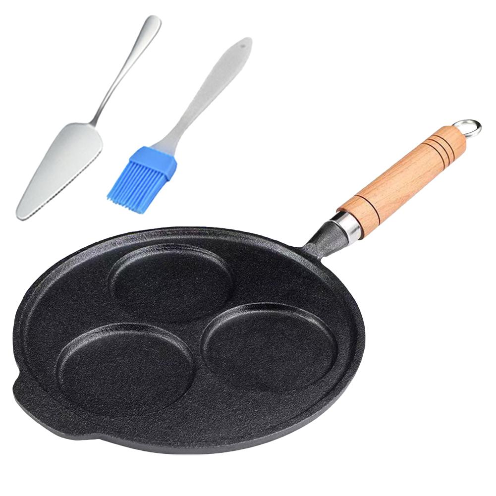 Чугунная сковорода для блинов с 3 отверстиями, сковорода для омлета, сковорода для жарки яиц с ручкой, сковорода для яиц на завтрак, блины, гамбургеры, сэндвичи чёрный