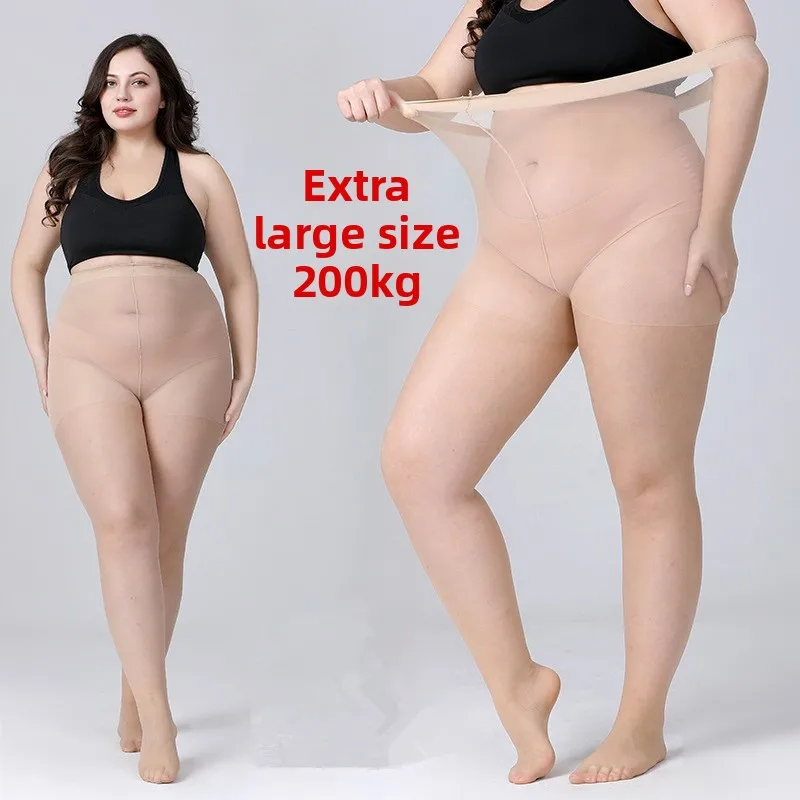 Чулки очень большого размера, 400 фунтов, против зацепления, черные летние ультратонкие колготки телесного цвета, удлиненные, большие размеры