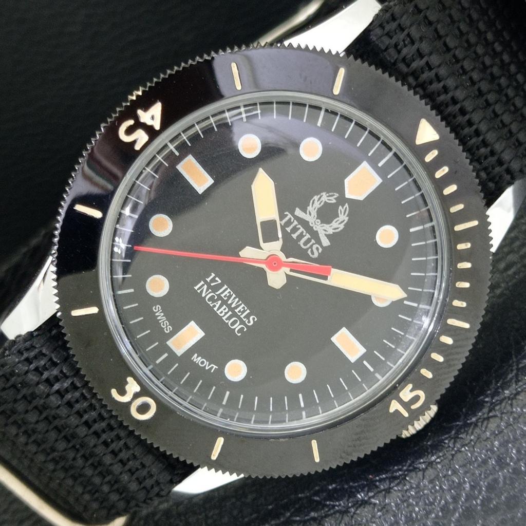 ШВЕЙЦАРСКИЕ ВИНТАЖНЫЕ ЧАСЫ TITUS С ВРАЩАЮЩИМСЯ БЕЗЕЛЕМ С РУЧНЫМ ЗАВОДОМ МУЖСКИЕ ЧАСЫ С ЧЕРНЫМ ЦИФЕРБЛАТОМ a700228-5 R202-a700228