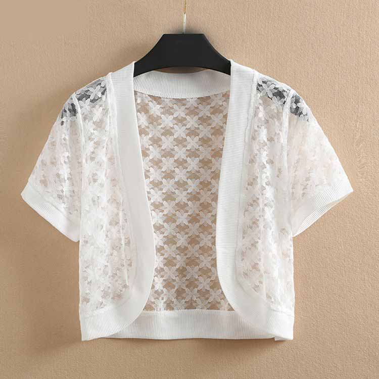 Шаль женская шифоновая солнцезащитная одежда рубашка с кондиционером тонкое пальто маленькая кофточка большой размер кардиган короткая верхняя одежда 3XL белый