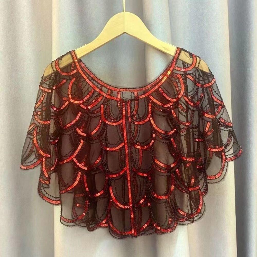 Шаль-накидка для кондиционированной комнаты с узором рыбьей чешуи, этнический стиль, шаль с пайетками, женская Style 04