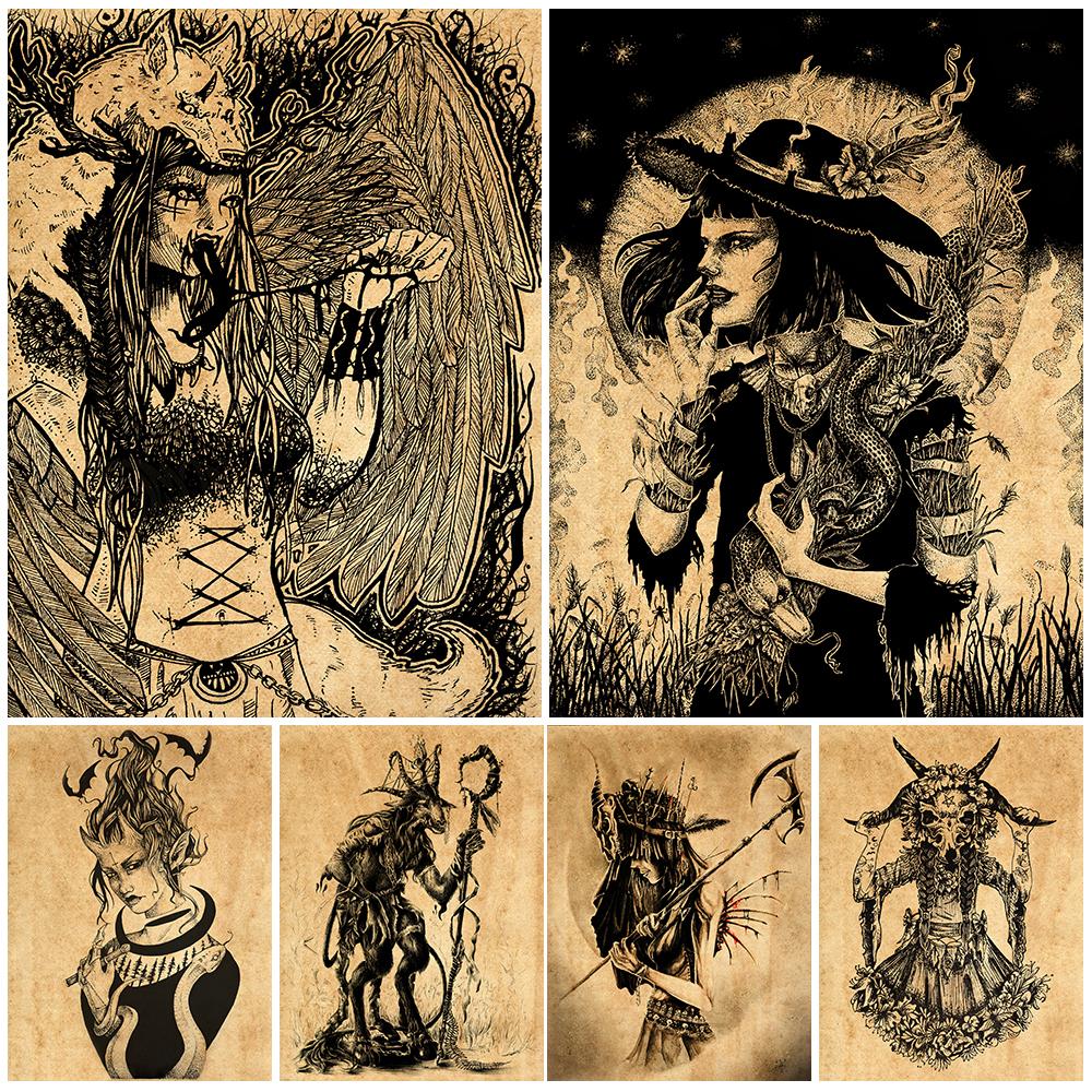 Шаманская ведьма винтажная настенная живопись на холсте абстрактный волшебник пастор винтажные постеры и принты