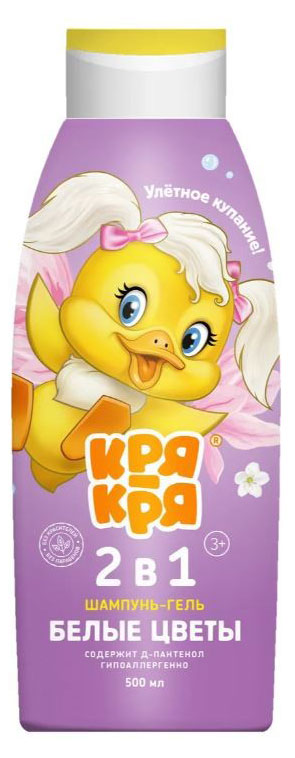 Шампунь-гель детский Кря-Кря 2 в 1 Белые цветы с 3 лет, 500 мл
