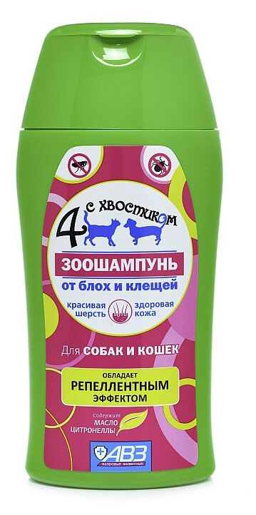 Шампунь для кошек и собак АВЗ репеллентный от блох и клещей с маслом цитронеллы, 180 мл