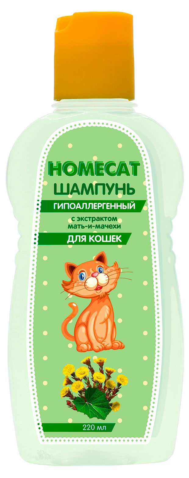 Шампунь для кошек HOMECAT гипоаллергенный с экстрактом мать-и-мачехи, 220 мл