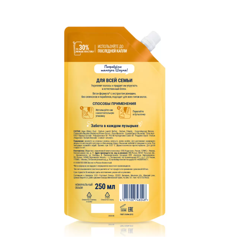 Шампунь Schauma Для Всей Семьи с экстрактом ромашки для всех типов волос 250 мл