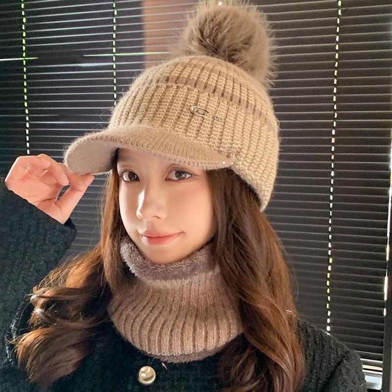 Шапка Женская Зимняя Теплая Плюшевая Шерстяная Шапка Велоспорт Защита от Холода Защита Ушей Утиный Язычок Вязаная Шапка single hat хаки