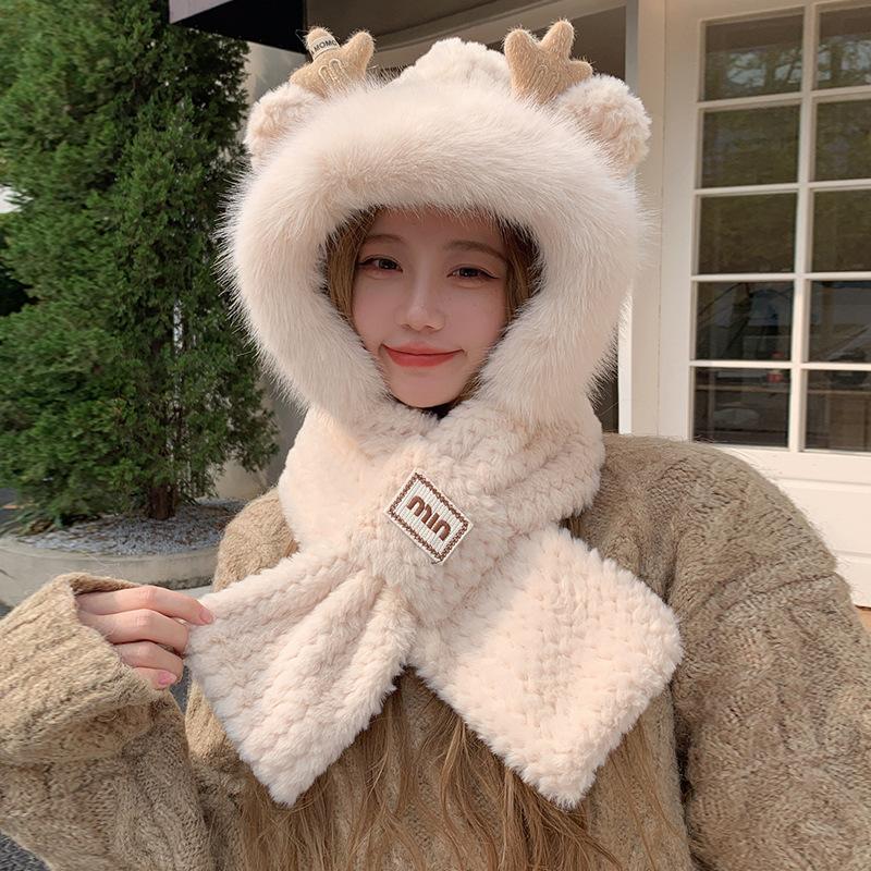 Шапка Женская Новая Осенне-Зимняя Шарф Все в Одном С Капюшоном Милая Лонгбао Утепленная Теплая Шапка Велосипедная Шапка для Защиты Ушей One size