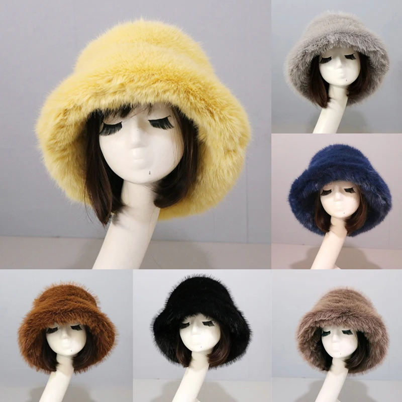 Шапка Зимняя женская модная многоцветная однотонная шапка из кроличьего меха Панама шапка рыбака Ретро Вязаная Шерстяная Панама для раков...