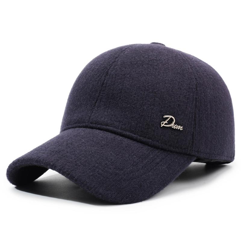 Шапка Мужская Осенне-Зимняя Шапка Защита Ушей Шерстяная Шапка Защита от Холода Толстая Теплая Уличная Для Среднего Возраста Бейсболка темно-синий