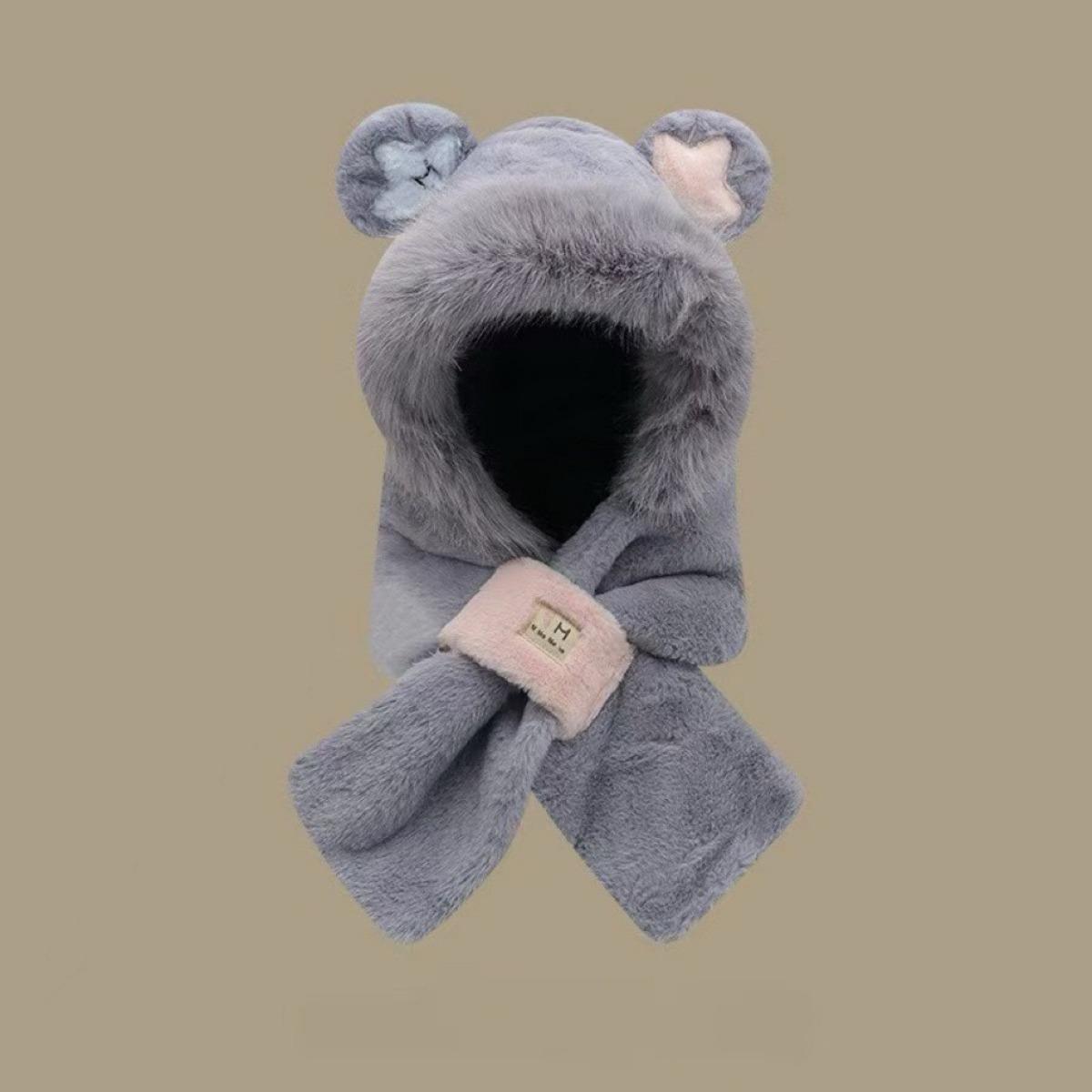 Шапка, Шарф, Женская, Плюшевая шапка, Теплая шапка, Утепленная, Антифриз, Ветрозащитная, Шарф с капюшоном серый