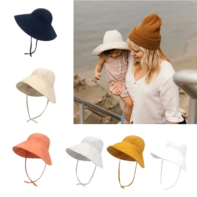 Шапка-бини для детей, однотонная летняя Солнцезащитная Панама с большими полями, мягкая хлопковая льняная шапка, для отдыха на открытом воз...