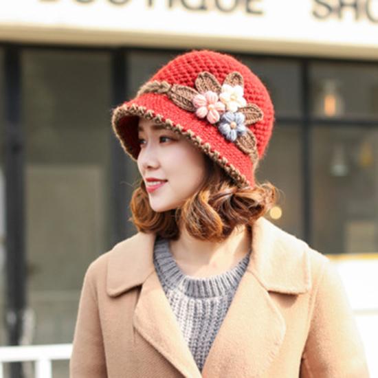 Шапка грубой вязки женская шерстяная шапка на осень и зиму классическая зимняя женская шапка цветы плюс пух милая шерстяная зимняя шапка