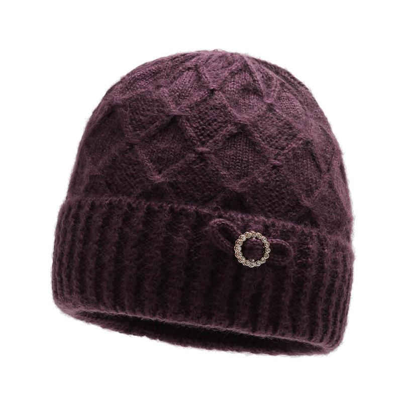 Шапка для пожилой женщины зимняя бабушка пожилая женщина осень и зима мама вязаная шерстяная утолщенная и с бархатом для тепла светло-фиолетовый