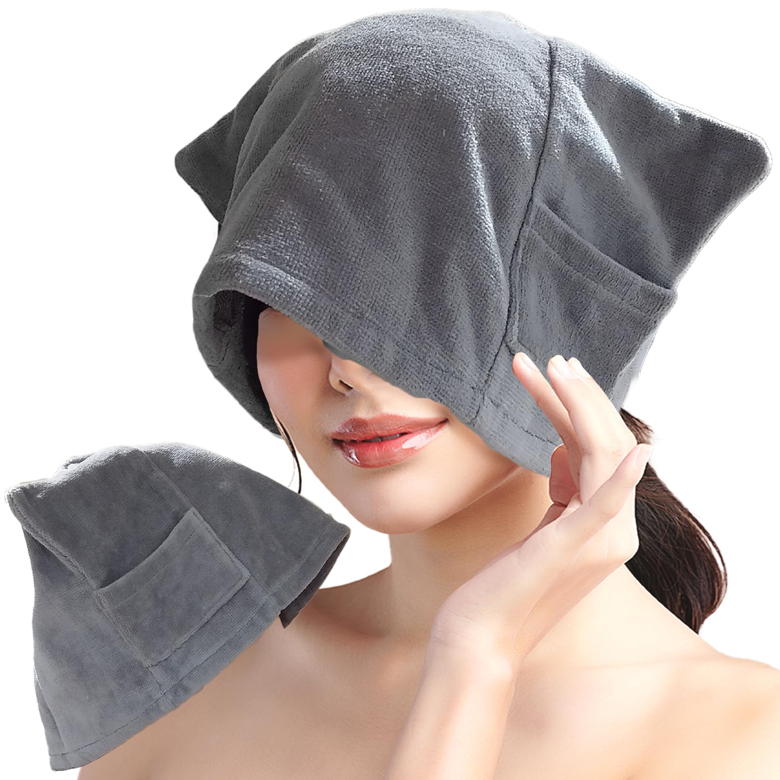Шапка для сауни Велика Шапка для сауни Рушник Милі котячі вушка [Cielbliss] Жіноча Чоловіча сірий колір