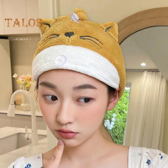 Шапка для сухих волос, коралловый флис, супер впитывающее полотенце для волос, полотенце для сушки волос с мультяшным котом и узором розовый