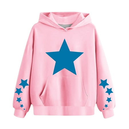 NaWent Girls Boys Hoodie Clearance Long Sleeved Stars Printed Sweatshirt Fashion Trend Kids Hooded Sweatshirt Pink 5 Years