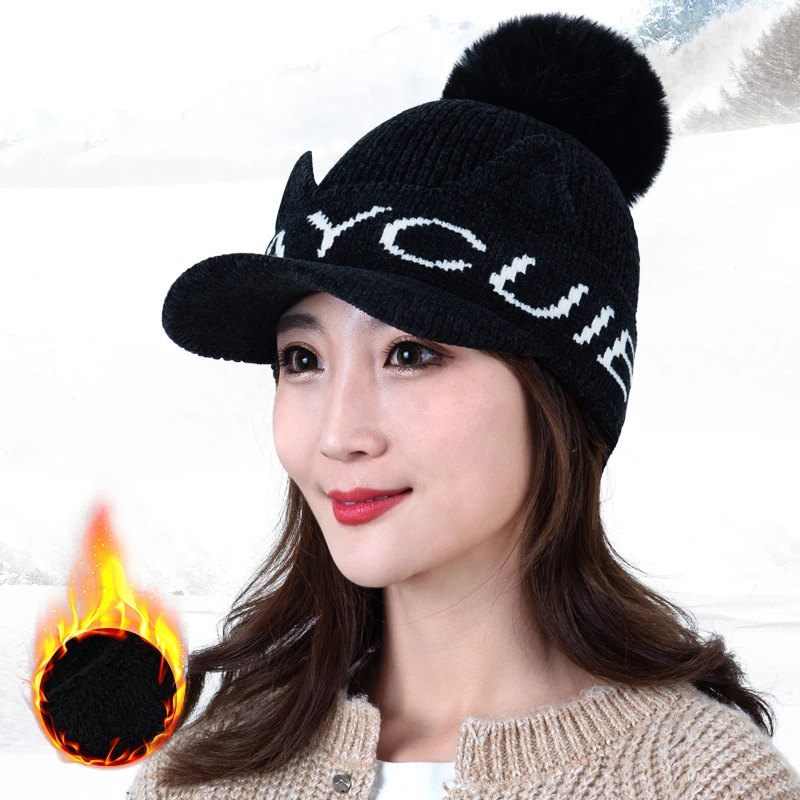 Шапка женская Зимняя шерстяная теплая плотная Милая вязаная шапка с защитой ушей из бархата Повседневная универсальная Молодежная