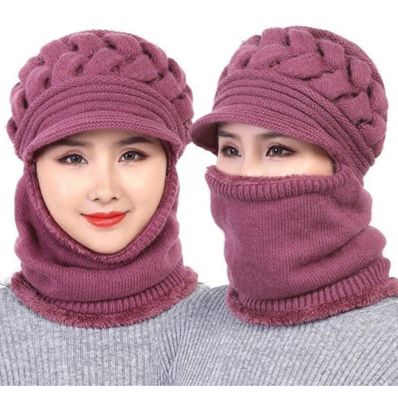 Шапка женская вязаная 1 В 3, маска для лица, шеи, снега, утолщенный теплый зимний шарф, новая маска, набор шапок, уличные спортивные аксессуары,...