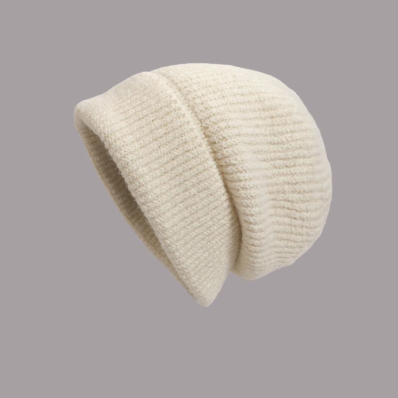 Шапка женская зимняя новая шапка из начесанной шерсти показывает маленькое лицо, модная уличная теплая вязаная шапка, защита ушей, головной убор тренд L(58-60cm) бежевый