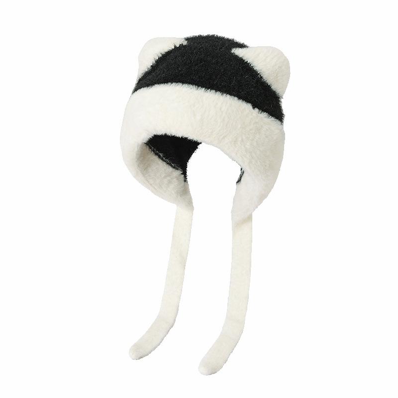 Шапка женская с милыми ушками плюшевая шапка зимняя для девочек милая вязаная шерстяная шапка утолщенная теплая шапка с ушками
