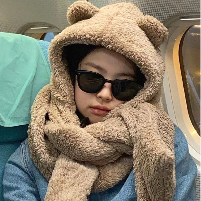 Шапка из бархата ягненка женская осенне-зимняя универсальная милая плюшевая шапка с капюшоном зимние перчатки утолщенная теплая защита дл...