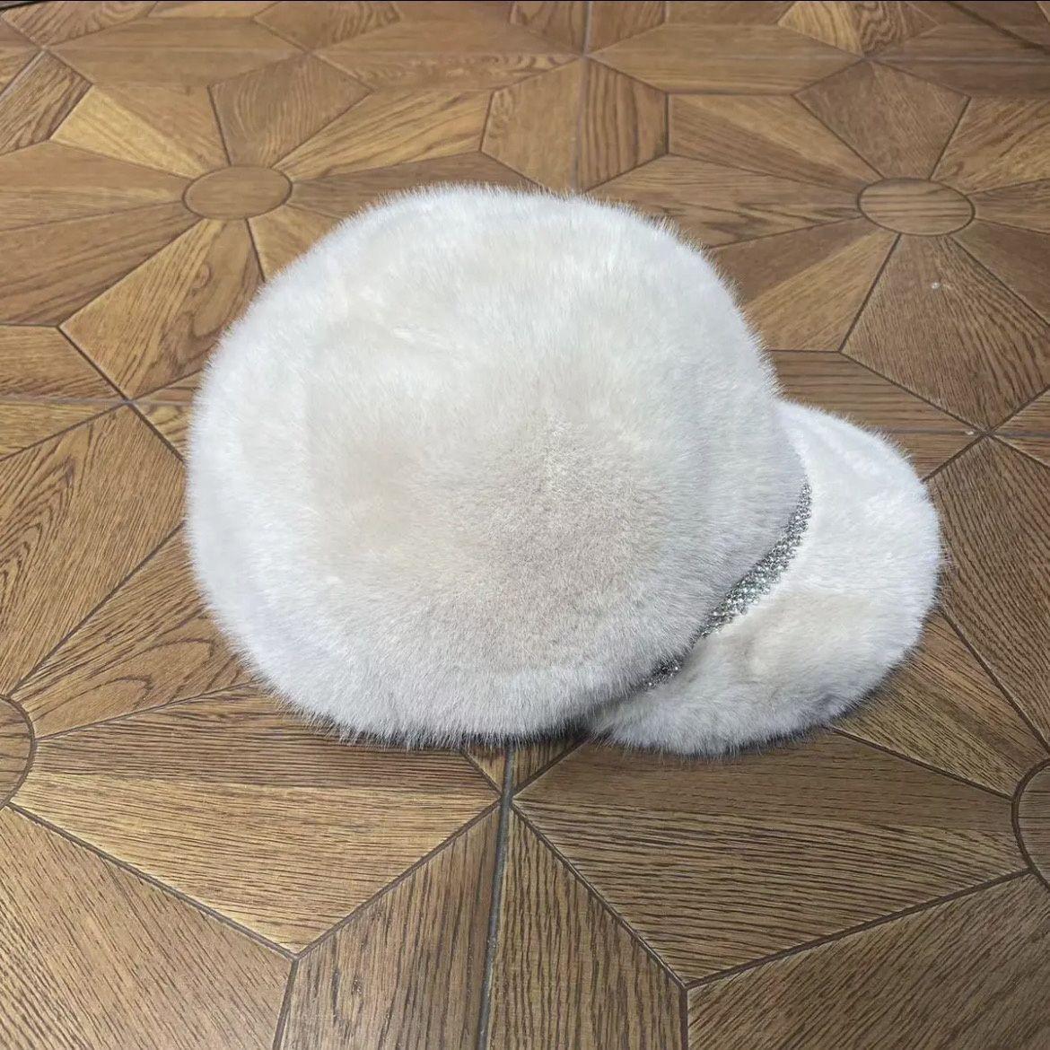 Шапка из искусственной норки женская зимняя в иностранном стиле с большими полями, кепка-берет, эластичная теплая шапка бежевый