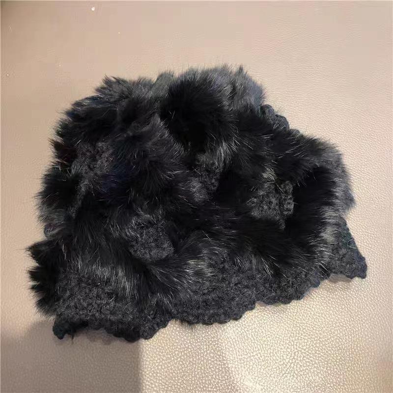 Шапка из меха кролика ручной работы, вязаная крючком, шерстяная, на осень-зиму, женская, универсальная, плюшевая, теплая, модная, в форме купола M(56-58cm) чёрный