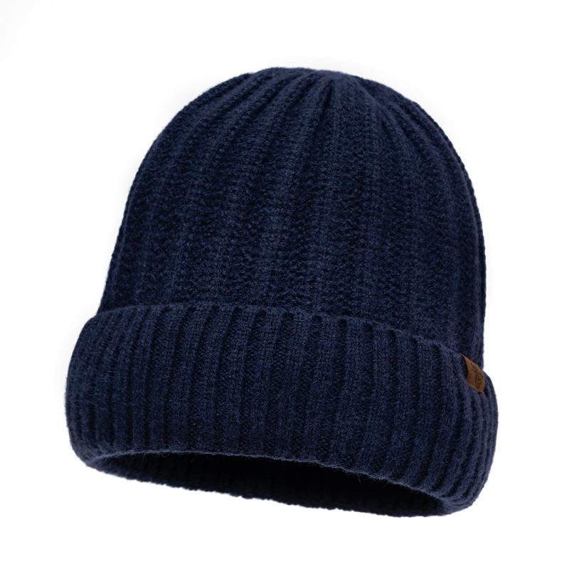 Шапка мужская осенне-зимняя теплая холодостойкая вязаная шапка женская защитная шапка с большой головой шерстяная шапка темно-синий