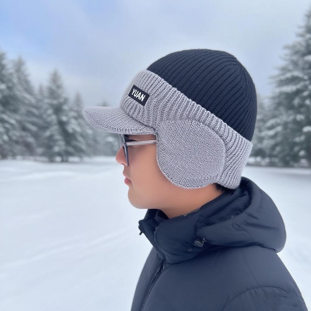 Шапка мужская с утиным язычком, для улицы, с защитой ушей, теплая, флисовая, вязаная, с алфавитом, цветная, пуловер, шерстяная шапка чёрный