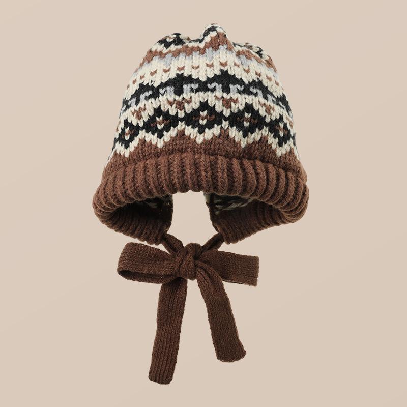 Шапка-ушанка в стиле Фэр-Айл, утепленная бархатом, теплая, с помпоном, с защитой ушей, шерстяная шапка, вязаная шапка для большой головы, женская зимняя