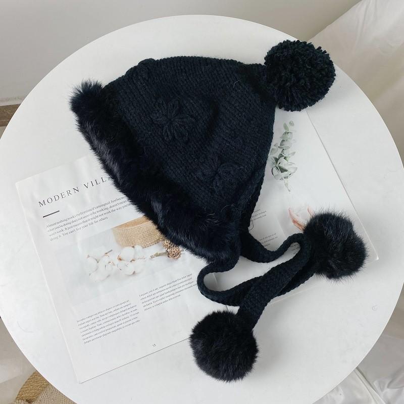 Шапка-ушанка флисовая вязаная теплая женская осенне-зимняя с надписью шерстяной шарф шапка из кроличьего пуха one size fits all чёрный