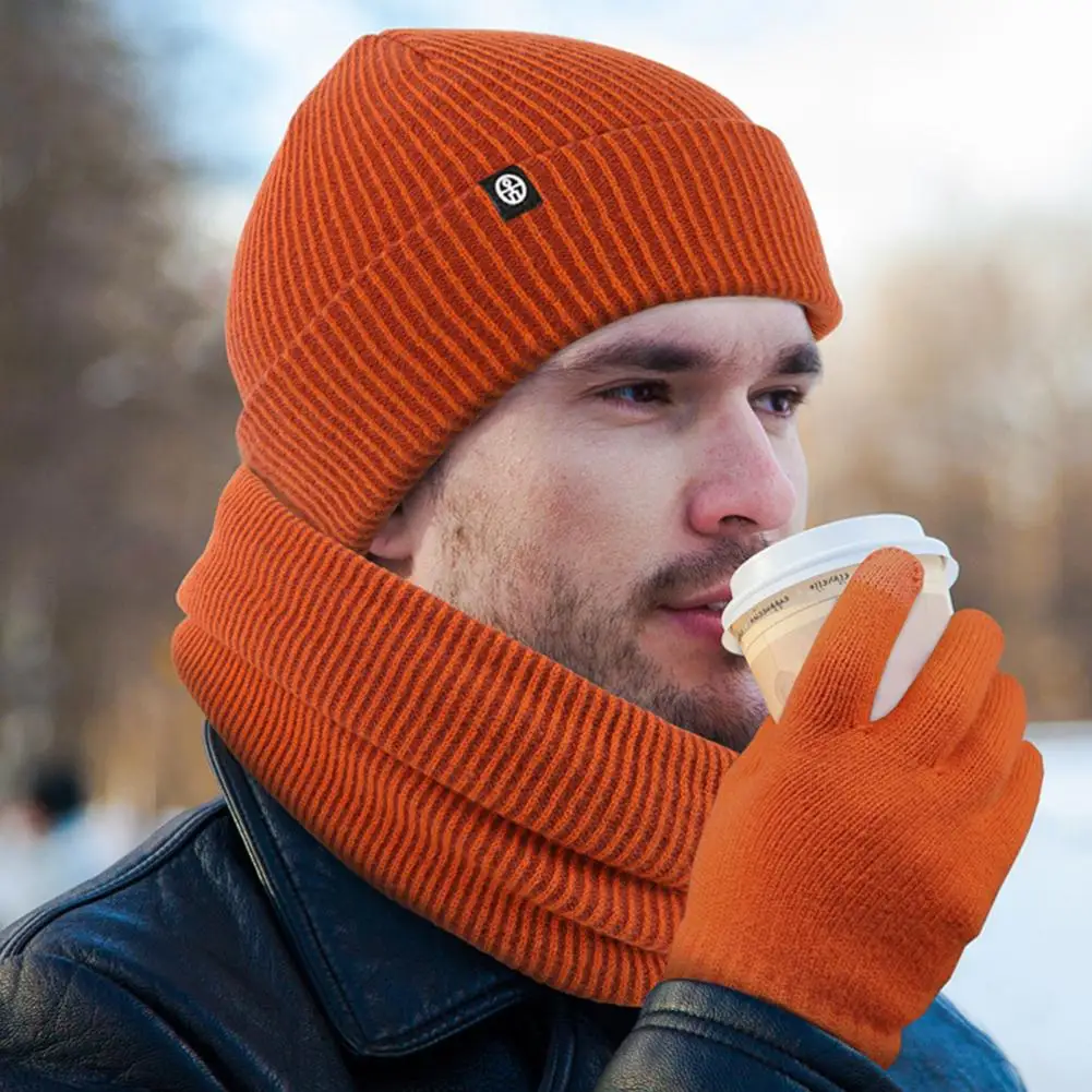 Шапка шарф перчатки Комплект из 3 предметов зимняя шапка шарф перчатки Набор для унисекс однотонная полосатая Толстая Теплая эластичная Нескользящая Шейная головка