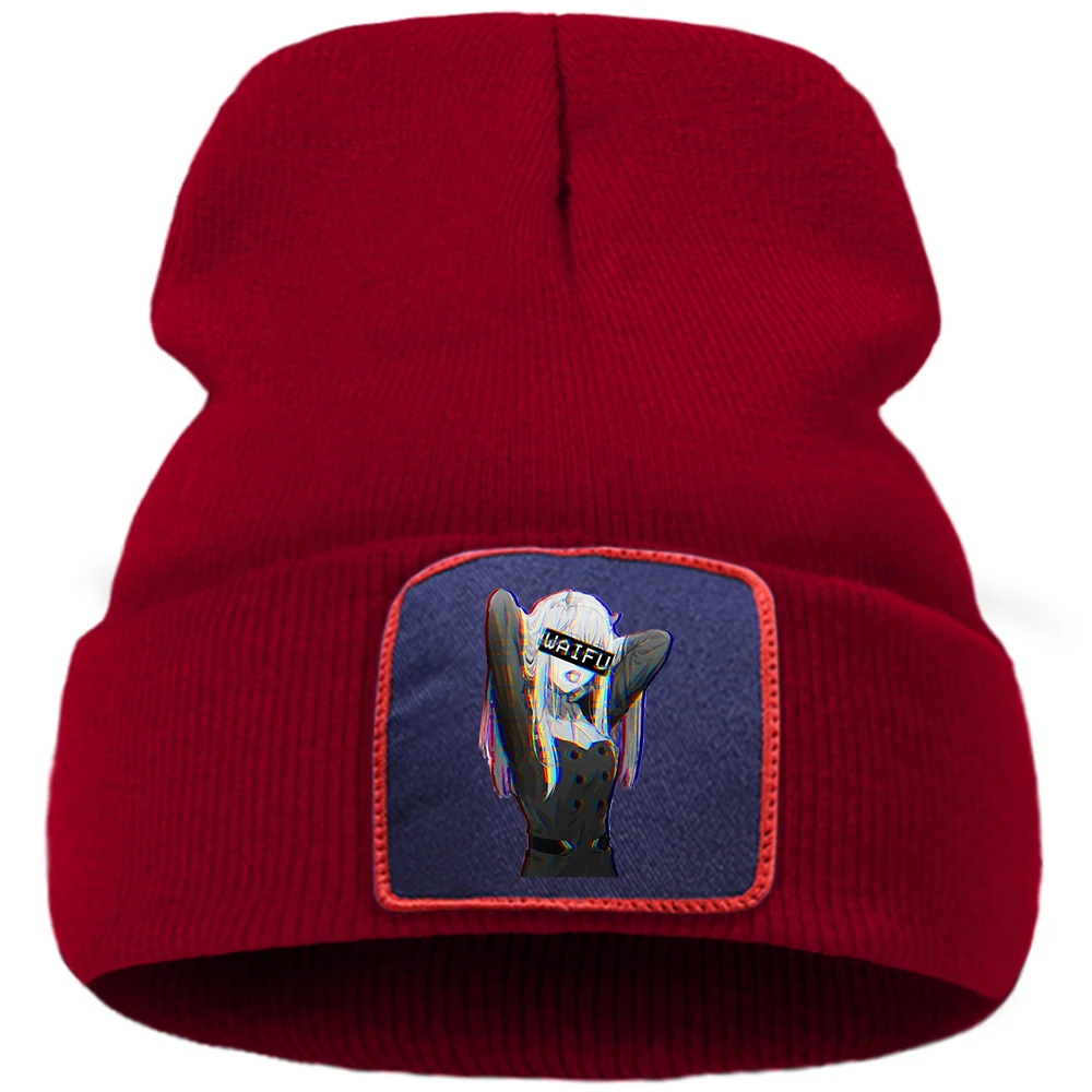 Шапка Zero Two с принтом унисекс, модная зимняя теплая вязаная шапка в стиле аниме, в стиле хип-хоп, однотонная простая шапка для мальчиков