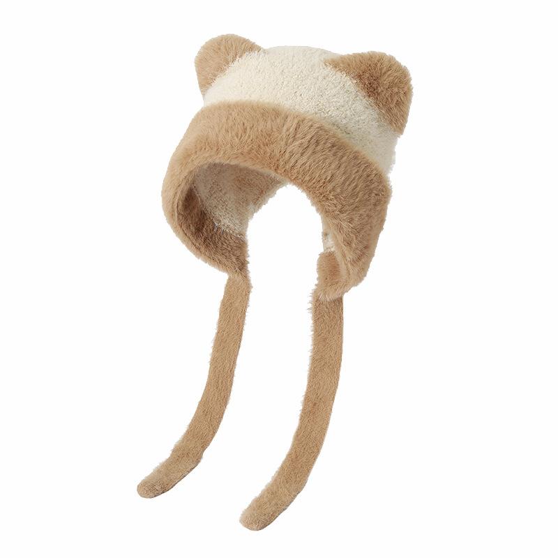 Шапки для женщин Милые плюшевые шапки с ушками для зимы Девочкам Милая вязаная шерстяная шапка Утепленная теплая шапка с защитой ушей One Size