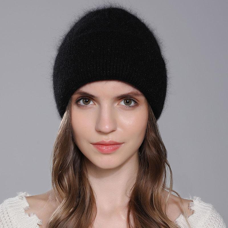 Шапки для женщин, модные шапки из меха ангорского кролика в стиле твист, зимняя теплая вязаная кашемировая шапка, женская повседневная шапка-чехол чёрный
