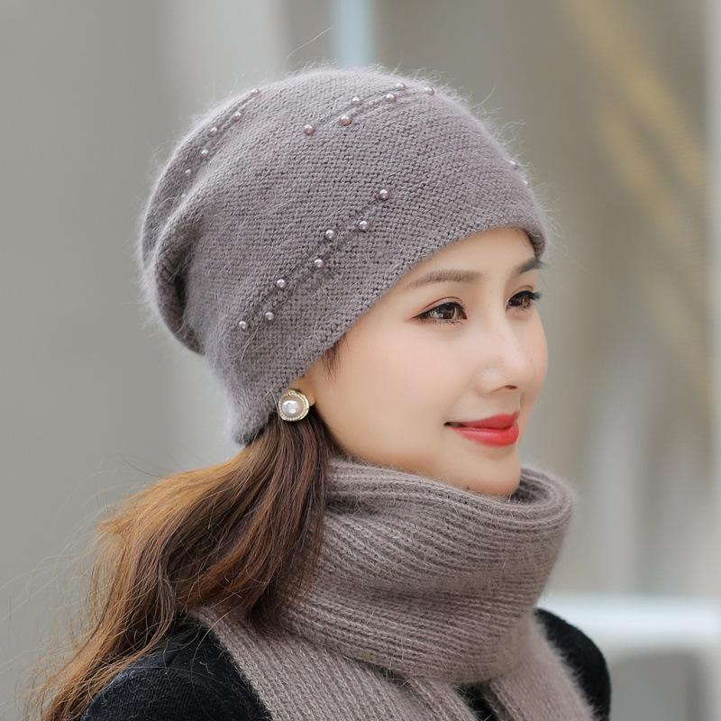Шапки для женщин среднего и пожилого возраста, утолщенные теплые вязаные шерстяные шапки на осень и зиму, береты для мам с жемчугом one size