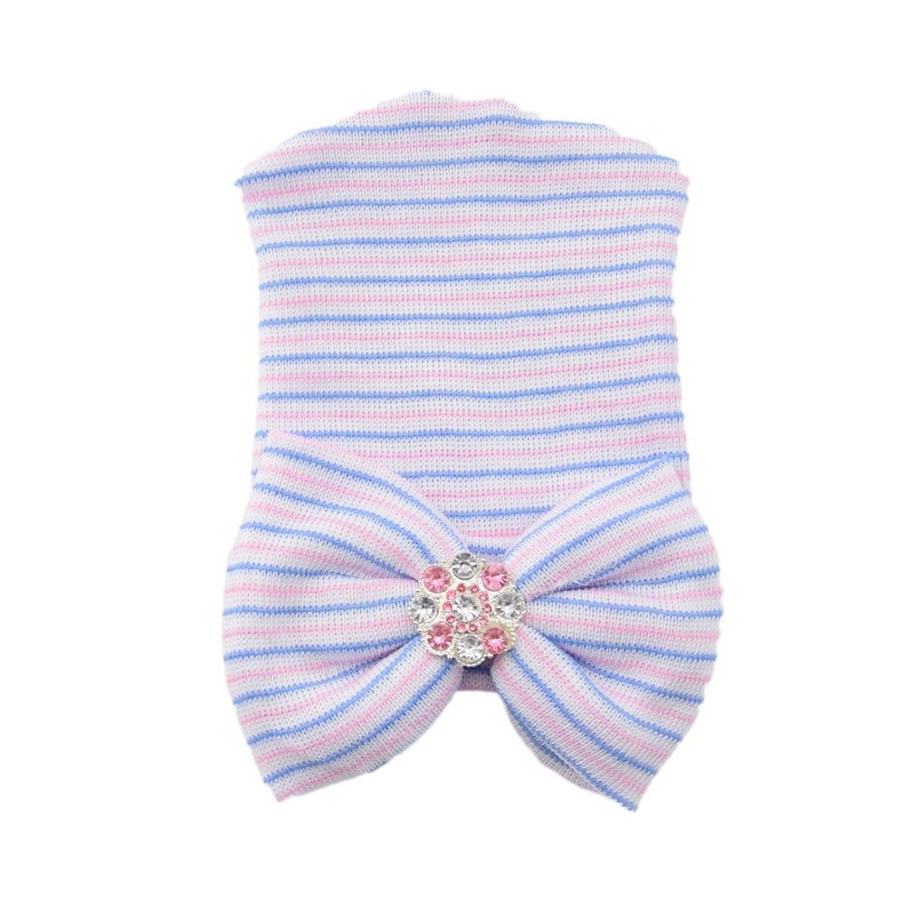 Шапочка для новорожденного с бантом и ярким ромбовидным узором, вязаная шапочка в полоску для младенцев, детская шапочка One size разноцветный